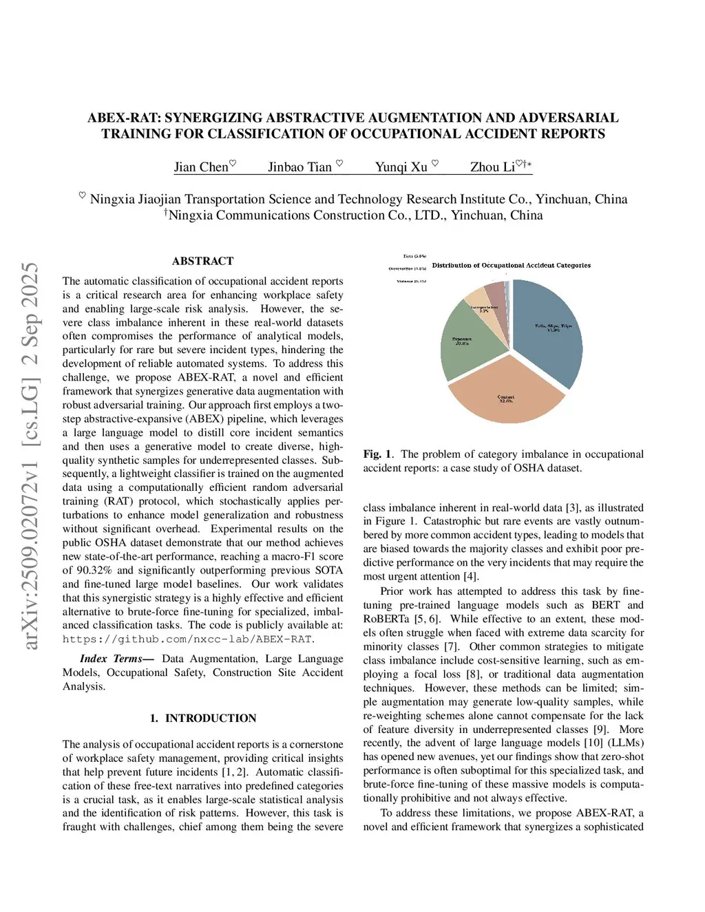 Abex-rat: Synergizing Abstractive Augmentation and Adversarial Training for Classification of Occupational Accident Reports
