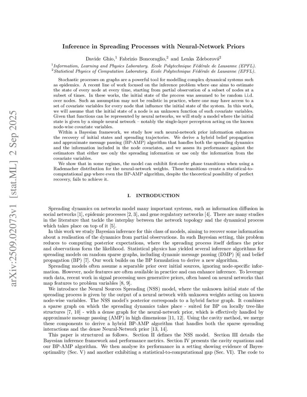 Stochastic processes on graphs are a powerful tool for modelling complex dynamical systems such as epidemics. A recent line of work focused on the inference problem where one aims to estimate the state of every node at every time, starting from partial observation of a subset of nodes at a subset of times. In these works, the initial state of the process was assumed to be random i.i.d. over nodes. Such an assumption may not be realistic in practice, where one may have access to a set of covariate variables for every node that influence the initial state of the system. In this work, we will assume that the initial state of a node is an unknown function of such covariate variables. Given that functions can be represented by neural networks, we will study a model where the initial state is given by a simple neural network -- notably the single-layer perceptron acting on the known node-wise covariate variables.Within a Bayesian framework, we study how such neural-network prior information enhances the recovery of initial states and spreading trajectories. We derive a hybrid belief propagation and approximate message passing (BP-AMP) algorithm that handles both the spreading dynamics and the information included in the node covariates, and we assess its performance against the estimators that either use only the spreading information or use only the information from the covariate variables.We show that in some regimes, the model can exhibit first-order phase transitions when using a Rademacher distribution for the neural-network weights. These transitions create a statistical-to-computational gap where even the BP-AMP algorithm, despite the theoretical possibility of perfect recovery, fails to achieve it.