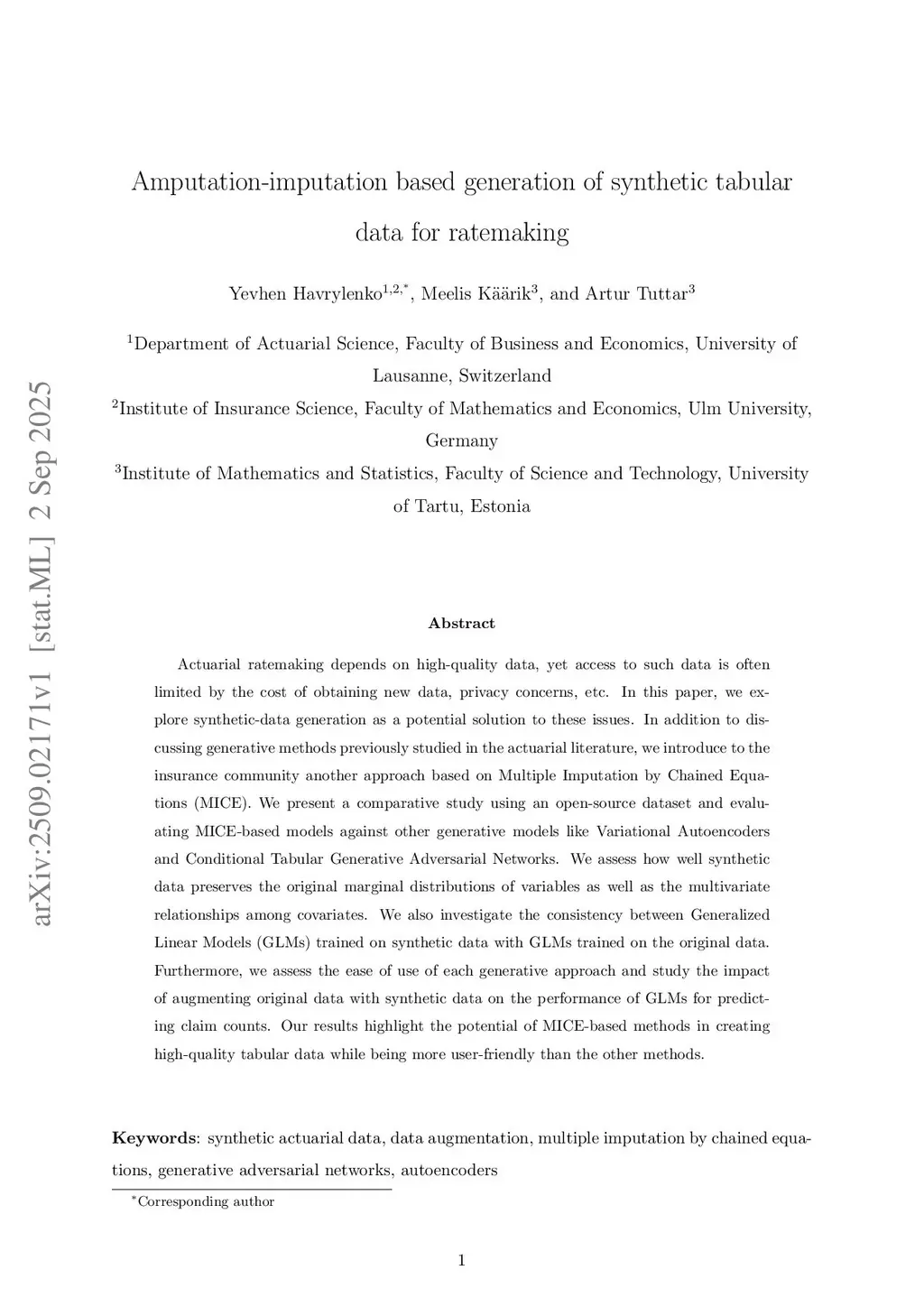 Synthetic data for ratemaking: imputation-based methods vs adversarial networks and autoencoders
