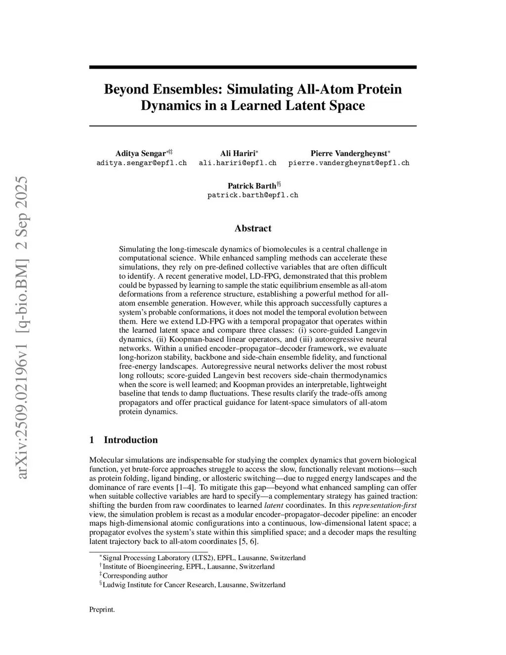 Beyond Ensembles: Simulating All-Atom Protein Dynamics in a Learned Latent Space