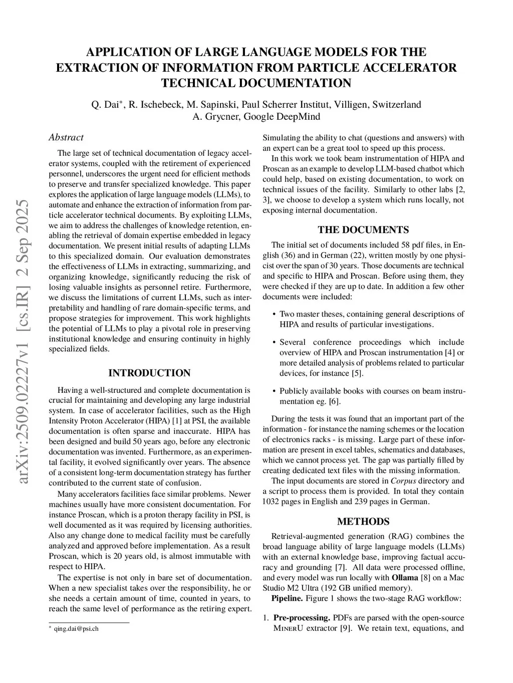 Application Of Large Language Models For The Extraction Of Information From Particle Accelerator Technical Documentation