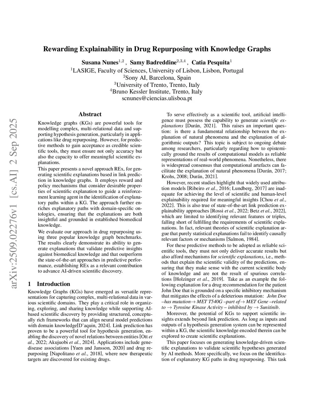 Rewarding Explainability in Drug Repurposing with Knowledge Graphs