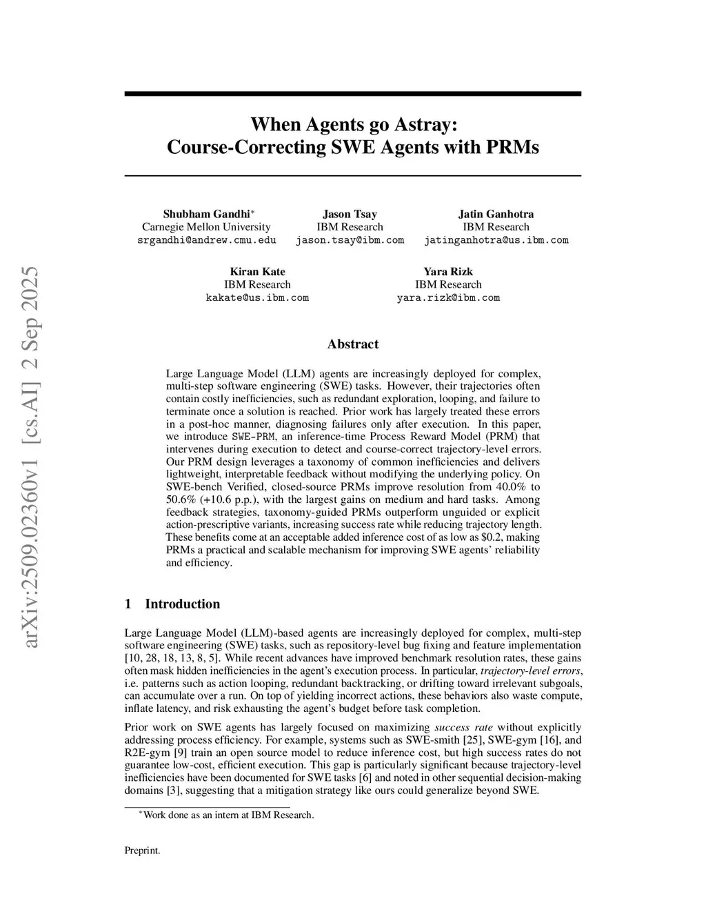 When Agents go Astray: Course-Correcting SWE Agents with PRMs