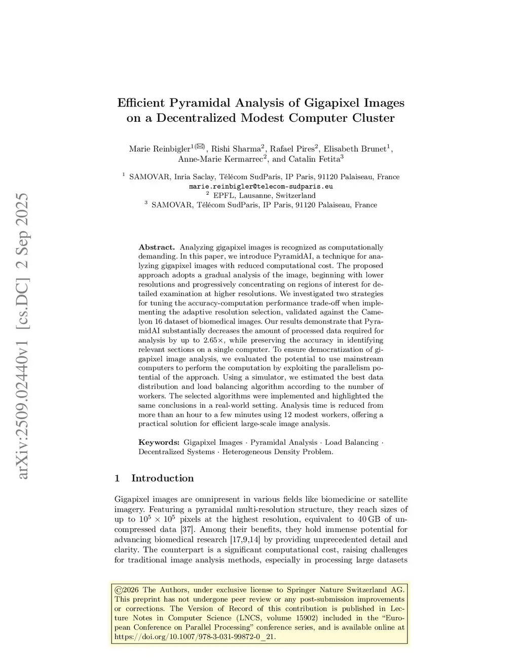 Efficient Pyramidal Analysis of Gigapixel Images on a Decentralized Modest Computer Cluster