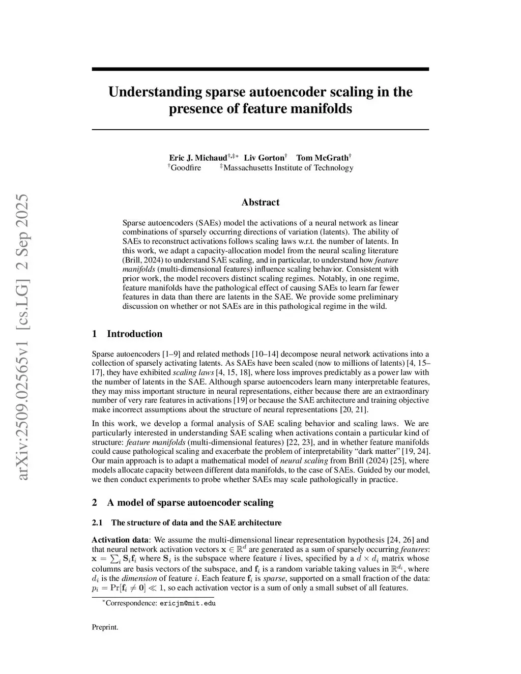Sparse autoencoders (SAEs) model the activations of a neural network as linear combinations of sparsely occurring directions of variation (latents). The ability of SAEs to reconstruct activations follows scaling laws w.r.t. the number of latents. In this work, we adapt a capacity-allocation model from the neural scaling literature (Brill, 2024) to understand SAE scaling, and in particular, to understand how "feature manifolds" (multi-dimensional features) influence scaling behavior. Consistent with prior work, the model recovers distinct scaling regimes. Notably, in one regime, feature manifolds have the pathological effect of causing SAEs to learn far fewer features in data than there are latents in the SAE. We provide some preliminary discussion on whether or not SAEs are in this pathological regime in the wild.