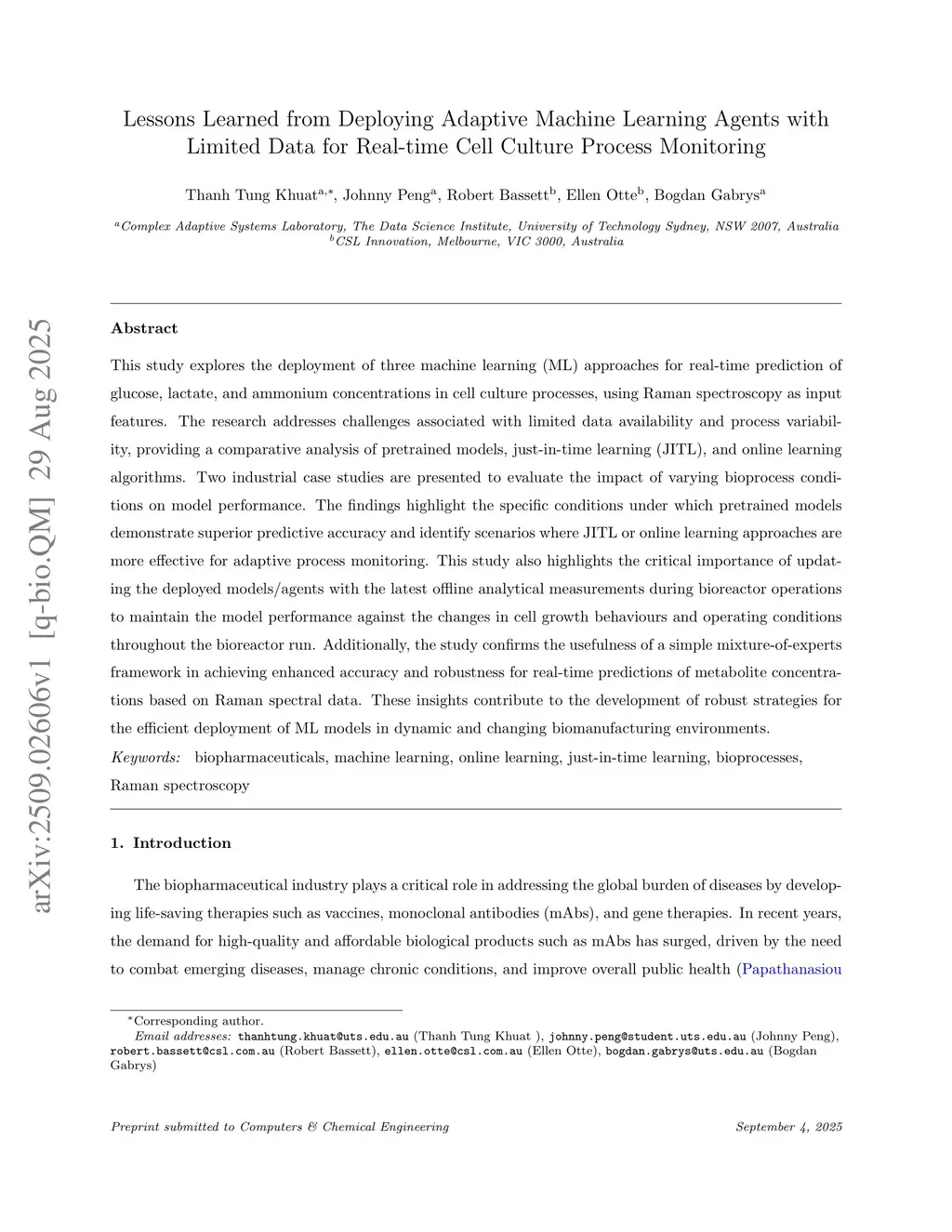 Lessons Learned from Deploying Adaptive Machine Learning Agents with Limited Data for Real-time Cell Culture Process Monitoring