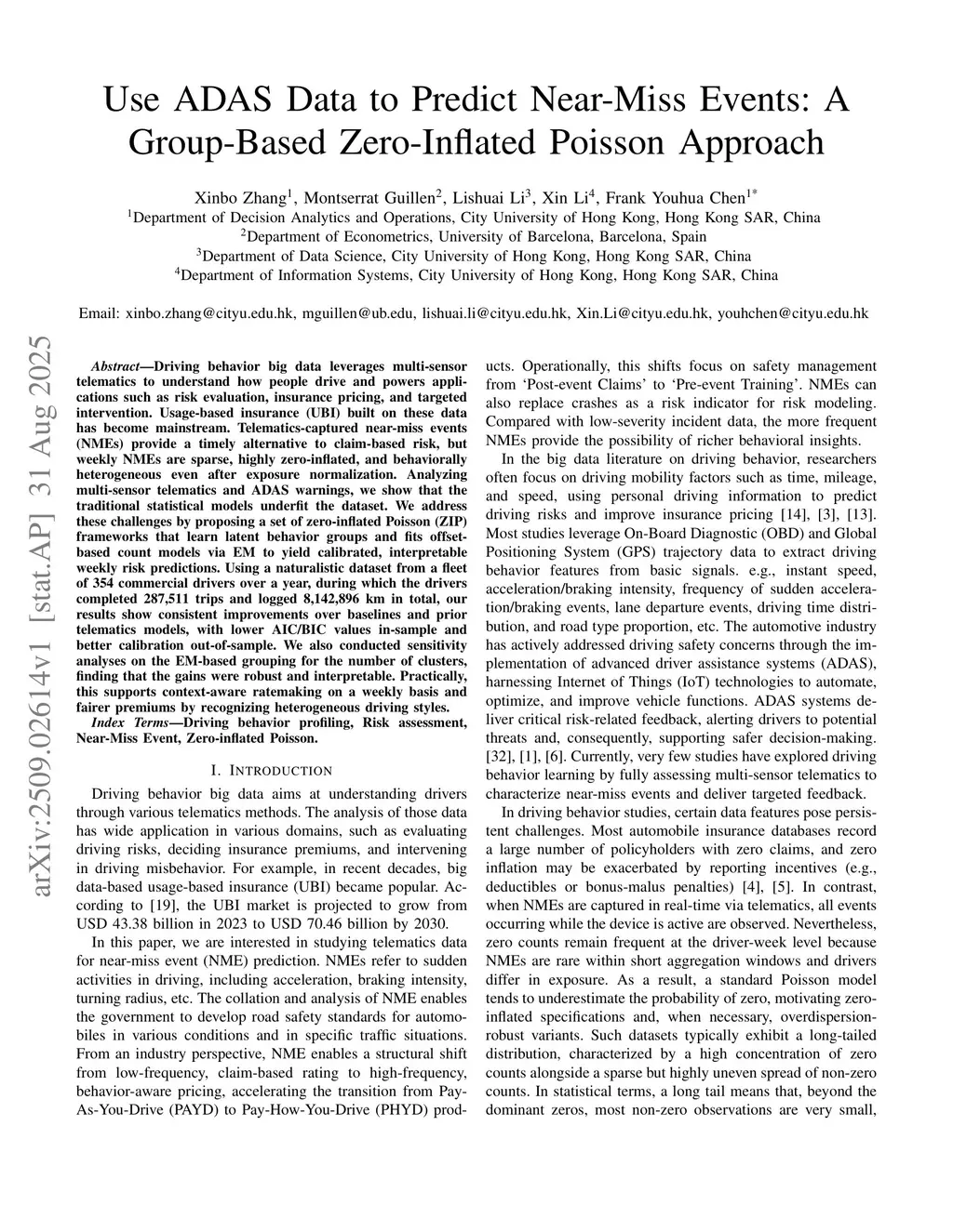 Use ADAS Data to Predict Near-Miss Events: A Group-Based Zero-Inflated Poisson Approach