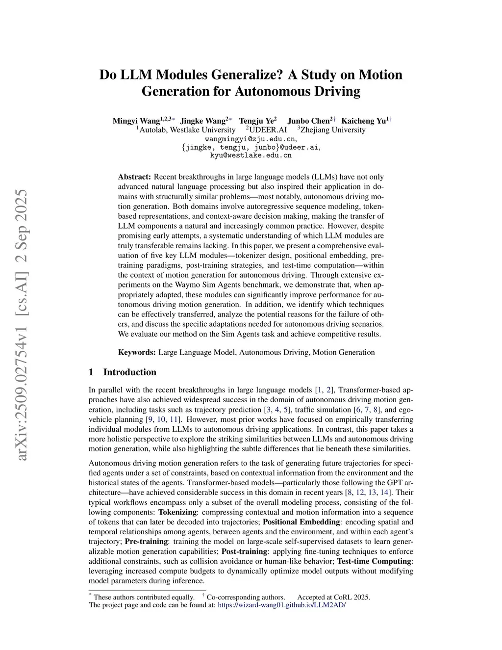 Do LLM Modules Generalize? A Study on Motion Generation for Autonomous Driving