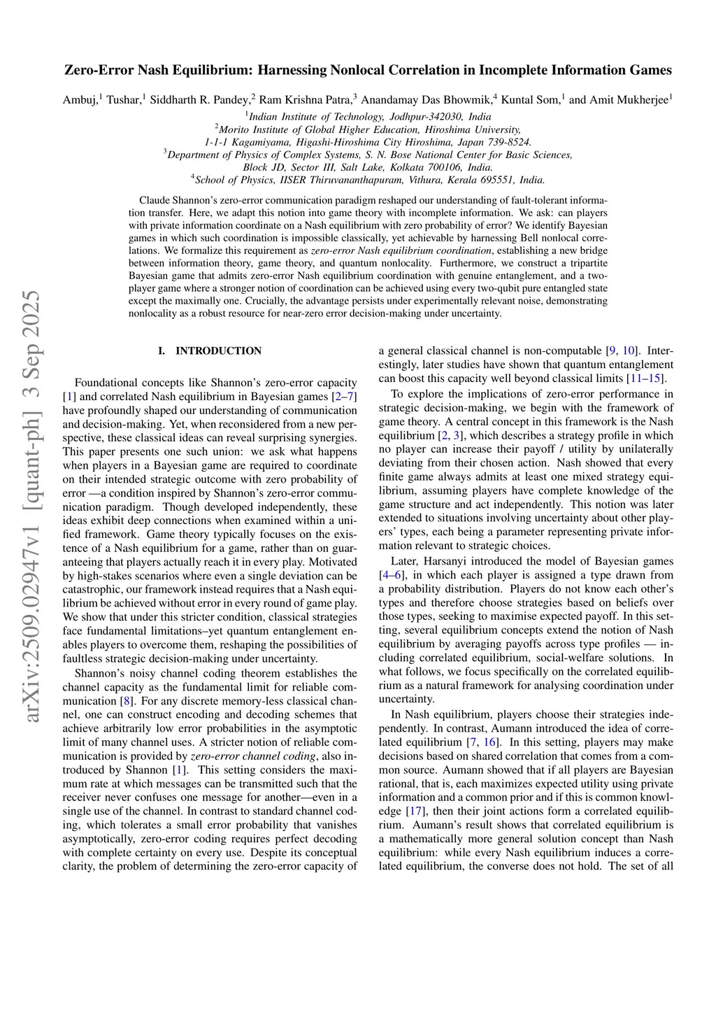 Zero-Error Nash Equilibrium: Harnessing Nonlocal Correlation in Incomplete Information Games