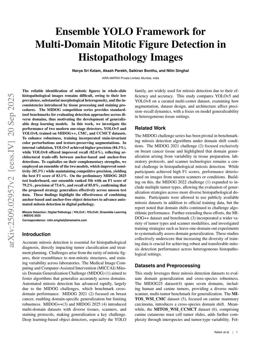 Ensemble YOLO Framework for Multi-Domain Mitotic Figure Detection in Histopathology Images