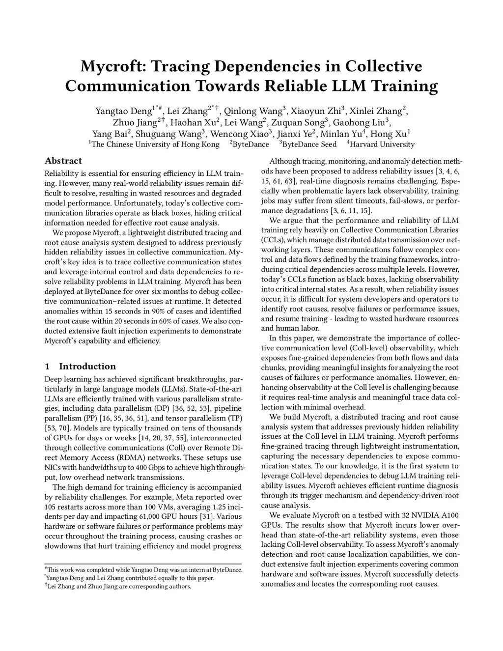 Mycroft: Tracing Dependencies in Collective Communication Towards Reliable LLM Training