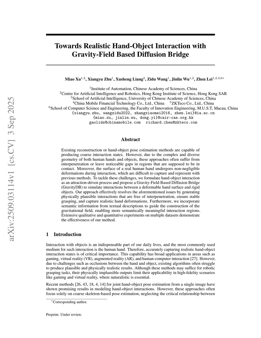 Towards Realistic Hand-Object Interaction with Gravity-Field Based Diffusion Bridge