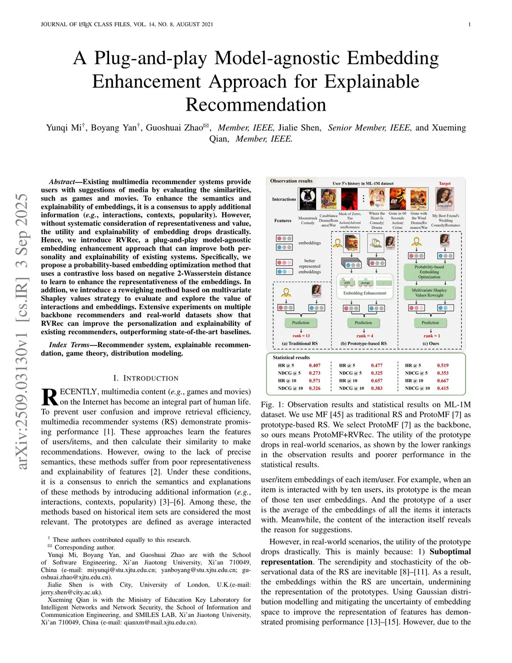Existing multimedia recommender systems provide users with suggestions of media by evaluating the similarities, such as games and movies. To enhance the semantics and explainability of embeddings, it is a consensus to apply additional information (e.g., interactions, contexts, popularity). However, without systematic consideration of representativeness and value, the utility and explainability of embedding drops drastically. Hence, we introduce RVRec, a plug-and-play model-agnostic embedding enhancement approach that can improve both personality and explainability of existing systems. Specifically, we propose a probability-based embedding optimization method that uses a contrastive loss based on negative 2-Wasserstein distance to learn to enhance the representativeness of the embeddings. In addtion, we introduce a reweighing method based on multivariate Shapley values strategy to evaluate and explore the value of interactions and embeddings. Extensive experiments on multiple backbone recommenders and real-world datasets show that RVRec can improve the personalization and explainability of existing recommenders, outperforming state-of-the-art baselines.