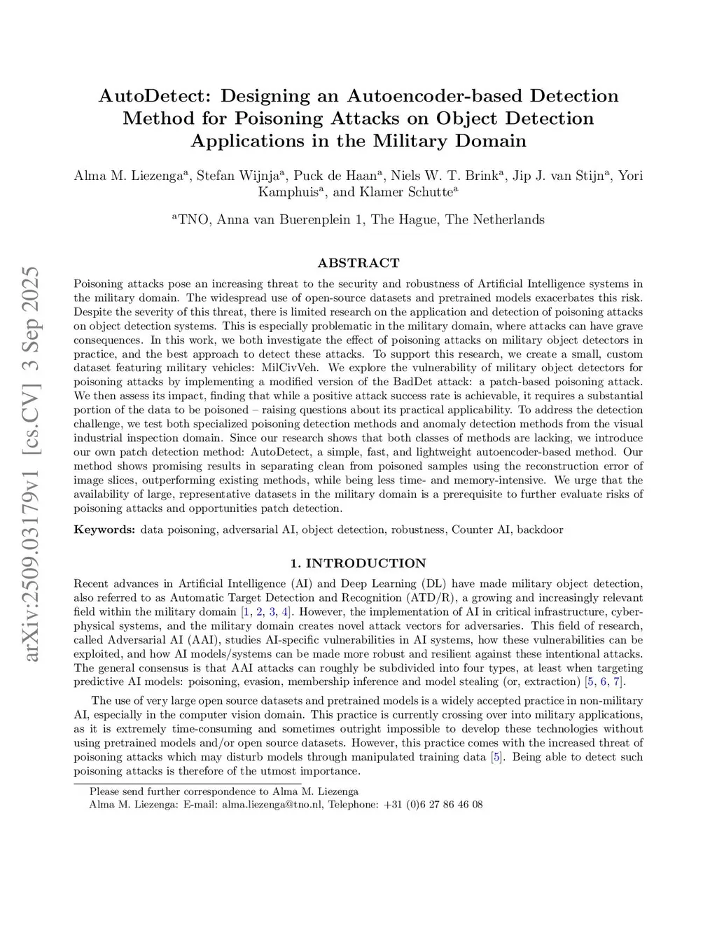 AutoDetect: Designing an Autoencoder-based Detection Method for Poisoning Attacks on Object Detection Applications in the Military Domain