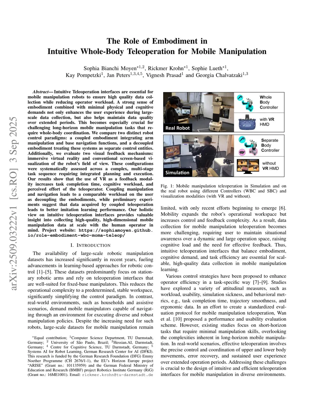 The Role of Embodiment in Intuitive Whole-Body Teleoperation for Mobile Manipulation