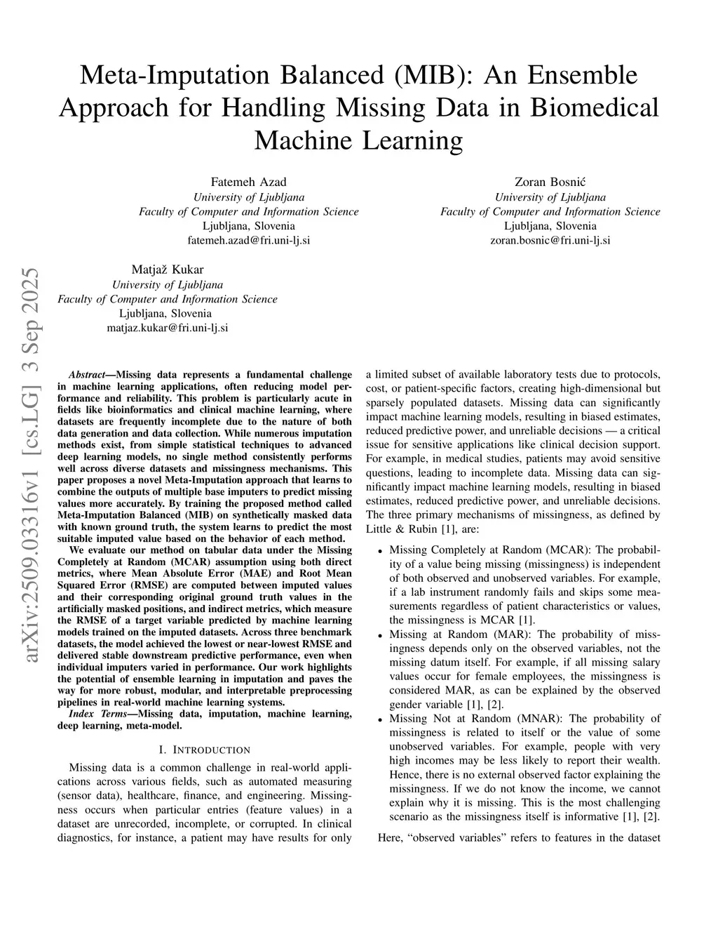 Meta-Imputation Balanced (MIB): An Ensemble Approach for Handling Missing Data in Biomedical Machine Learning