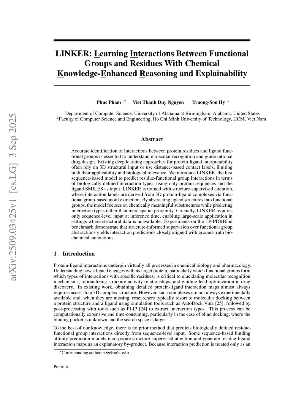 LINKER: Learning Interactions Between Functional Groups and Residues With Chemical Knowledge-Enhanced Reasoning and Explainability