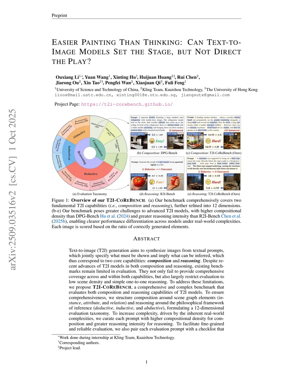 Text-to-image (T2I) generation aims to synthesize images from textual prompts, which jointly specify what must be shown and imply what can be inferred, thereby corresponding to two core capabilities: composition and reasoning. However, with the emerging advances of T2I models in reasoning beyond composition, existing benchmarks reveal clear limitations in providing comprehensive evaluations across and within these capabilities. Meanwhile, these advances also enable models to handle more complex prompts, whereas current benchmarks remain limited to low scene density and simplified one-to-one reasoning. To address these limitations, we propose T2I-CoReBench, a comprehensive and complex benchmark that evaluates both composition and reasoning capabilities of T2I models. To ensure comprehensiveness, we structure composition around scene graph elements (instance, attribute, and relation) and reasoning around the philosophical framework of inference (deductive, inductive, and abductive), formulating a 12-dimensional evaluation taxonomy. To increase complexity, driven by the inherent complexities of real-world scenarios, we curate each prompt with high compositional density for composition and multi-step inference for reasoning. We also pair each prompt with a checklist that specifies individual yes/no questions to assess each intended element independently to facilitate fine-grained and reliable evaluation. In statistics, our benchmark comprises 1,080 challenging prompts and around 13,500 checklist questions. Experiments across 27 current T2I models reveal that their composition capability still remains limited in complex high-density scenarios, while the reasoning capability lags even further behind as a critical bottleneck, with all models struggling to infer implicit elements from prompts. Our project page: this https URL.