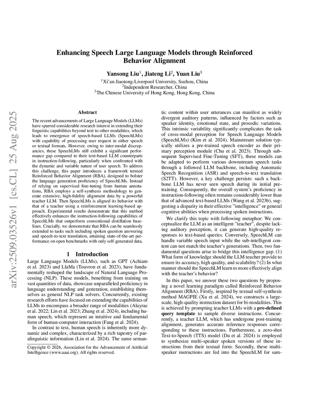 Enhancing Speech Large Language Models through Reinforced Behavior Alignment