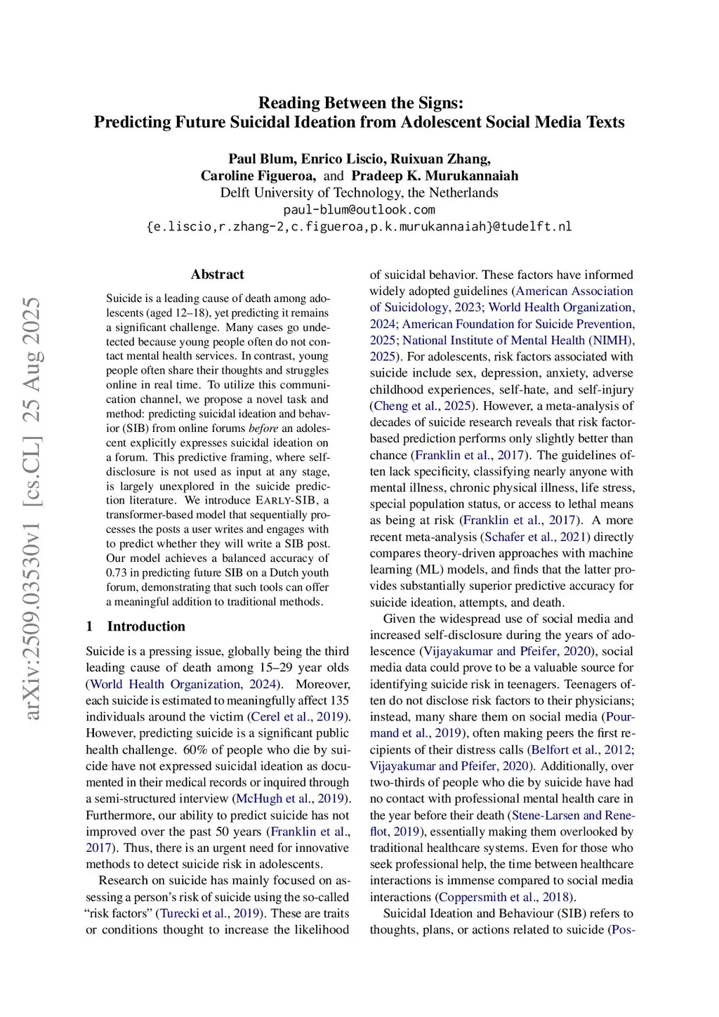 Suicide is a leading cause of death among adolescents (12-18), yet predicting it remains a significant challenge. Many cases go undetected due to a lack of contact with mental health services. Social media, however, offers a unique opportunity, as young people often share their thoughts and struggles online in real time. In this work, we propose a novel task and method to approach it: predicting suicidal ideation and behavior (SIB) from forum posts before an adolescent explicitly expresses suicidal ideation on an online forum. This predictive framing, where no self-disclosure is used as input at any stage, remains largely unexplored in the suicide prediction literature. To this end, we introduce Early-SIB, a transformer-based model that sequentially processes the posts a user writes and engages with to predict whether they will write a SIB post. Our model achieves a balanced accuracy of 0.73 for predicting future SIB on a Dutch youth forum, demonstrating that such tools can offer a meaningful addition to traditional methods.