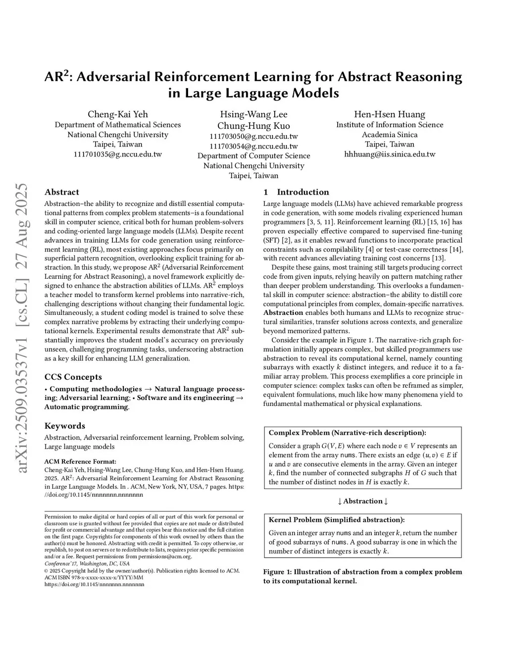 AR: Adversarial Reinforcement Learning for Abstract Reasoning in Large Language Models