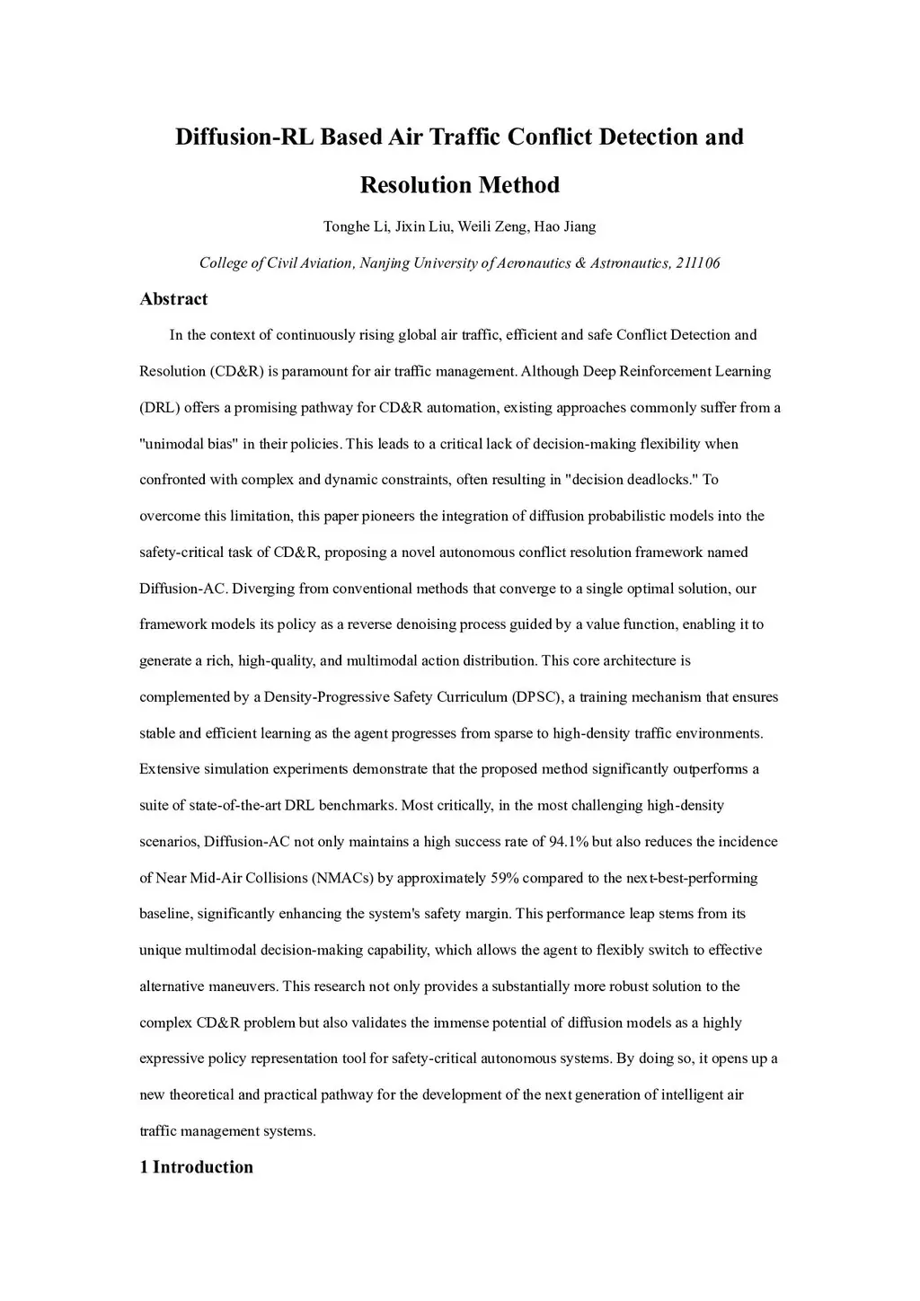 Diffusion-RL Based Air Traffic Conflict Detection and Resolution Method