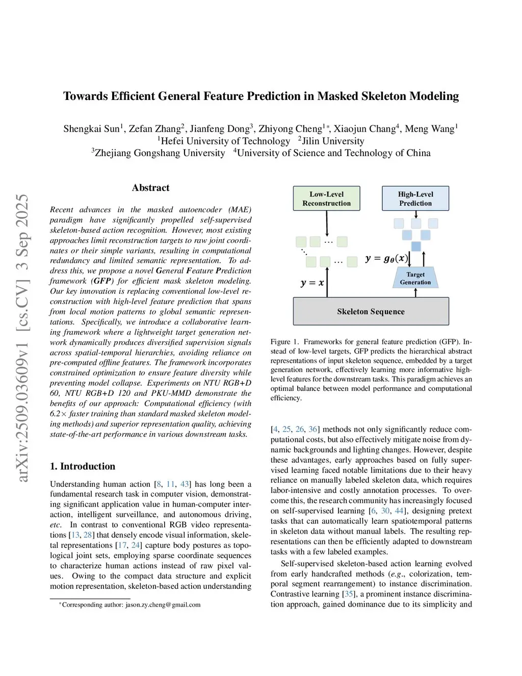 Towards Efficient General Feature Prediction in Masked Skeleton Modeling