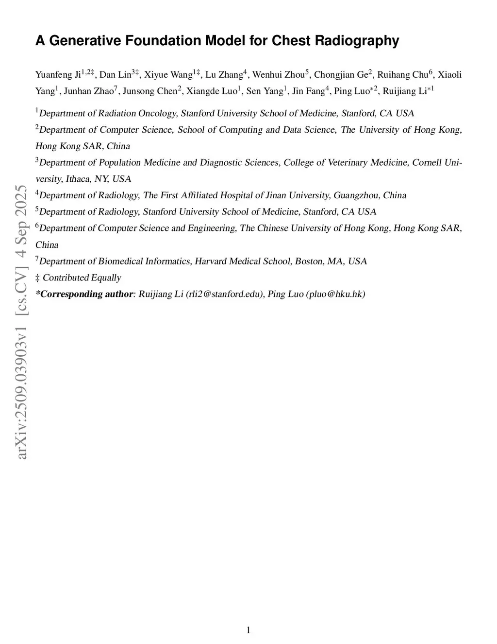 The scarcity of well-annotated diverse medical images is a major hurdle for developing reliable AI models in healthcare. Substantial technical advances have been made in generative foundation models for natural images. Here we develop `ChexGen', a generative vision-language foundation model that introduces a unified framework for text-, mask-, and bounding box-guided synthesis of chest radiographs. Built upon the latent diffusion transformer architecture, ChexGen was pretrained on the largest curated chest X-ray dataset to date, consisting of 960,000 radiograph-report pairs. ChexGen achieves accurate synthesis of radiographs through expert evaluations and quantitative metrics. We demonstrate the utility of ChexGen for training data augmentation and supervised pretraining, which led to performance improvements across disease classification, detection, and segmentation tasks using a small fraction of training data. Further, our model enables the creation of diverse patient cohorts that enhance model fairness by detecting and mitigating demographic biases. Our study supports the transformative role of generative foundation models in building more accurate, data-efficient, and equitable medical AI systems.