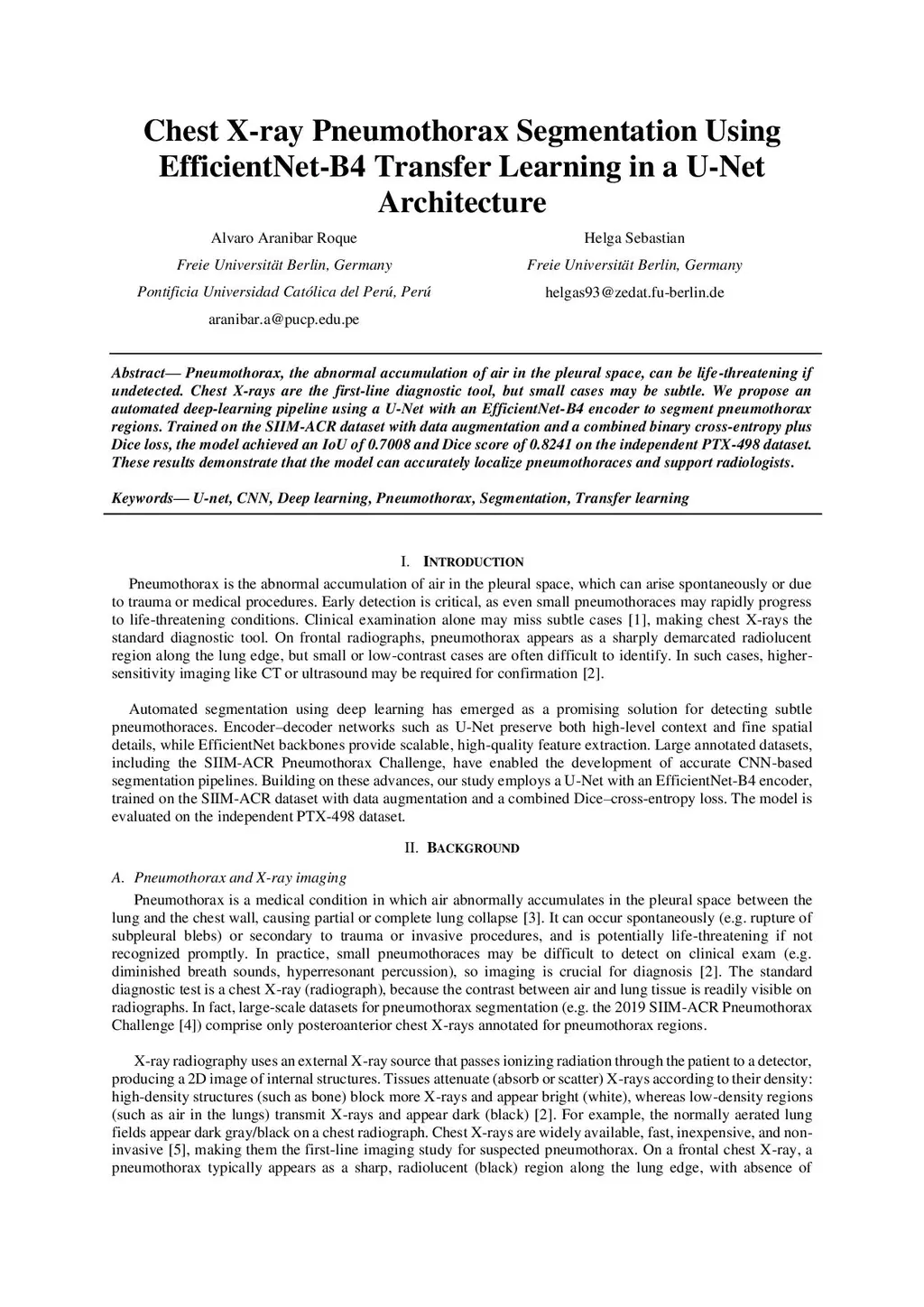 Pneumothorax, the abnormal accumulation of air in the pleural space, can be life-threatening if undetected. Chest X-rays are the first-line diagnostic tool, but small cases may be subtle. We propose an automated deep-learning pipeline using a U-Net with an EfficientNet-B4 encoder to segment pneumothorax regions. Trained on the SIIM-ACR dataset with data augmentation and a combined binary cross-entropy plus Dice loss, the model achieved an IoU of 0.7008 and Dice score of 0.8241 on the independent PTX-498 dataset. These results demonstrate that the model can accurately localize pneumothoraces and support radiologists.