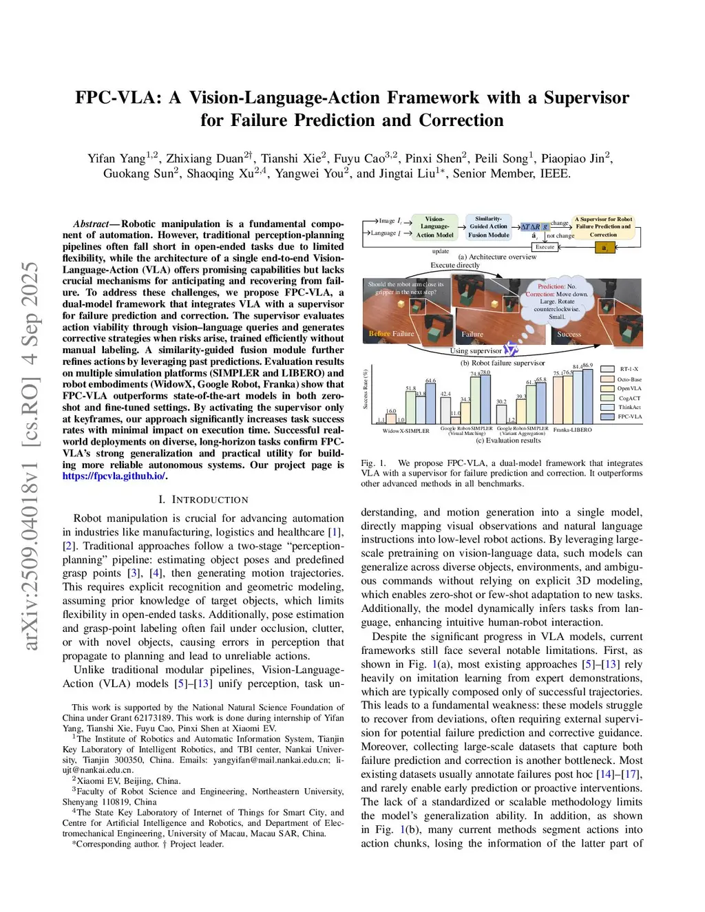 FPC-VLA: A Vision-Language-Action Framework with a Supervisor for Failure Prediction and Correction