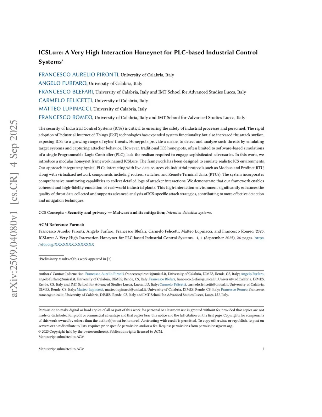 ICSLure: A Very High Interaction Honeynet for PLC-based Industrial Control Systems