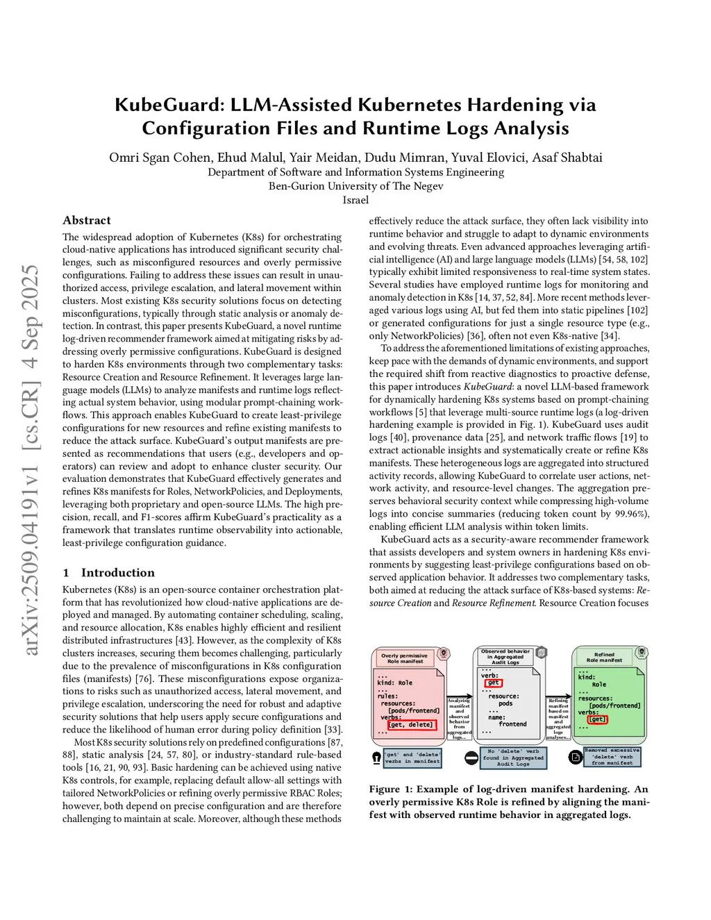 KubeGuard: LLM-Assisted Kubernetes Hardening via Configuration Files and Runtime Logs Analysis