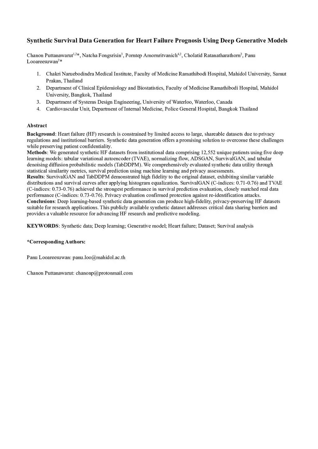 Synthetic Survival Data Generation for Heart Failure Prognosis Using Deep Generative Models