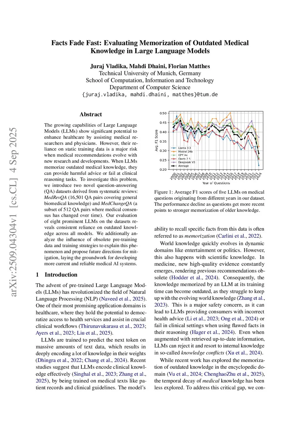 The growing capabilities of Large Language Models (LLMs) show significant potential to enhance healthcare by assisting medical researchers and physicians. However, their reliance on static training data is a major risk when medical recommendations evolve with new research and developments. When LLMs memorize outdated medical knowledge, they can provide harmful advice or fail at clinical reasoning tasks. To investigate this problem, we introduce two novel question-answering (QA) datasets derived from systematic reviews: MedRevQA (16,501 QA pairs covering general biomedical knowledge) and MedChangeQA (a subset of 512 QA pairs where medical consensus has changed over time). Our evaluation of eight prominent LLMs on the datasets reveals consistent reliance on outdated knowledge across all models. We additionally analyze the influence of obsolete pre-training data and training strategies to explain this phenomenon and propose future directions for mitigation, laying the groundwork for developing more current and reliable medical AI systems.