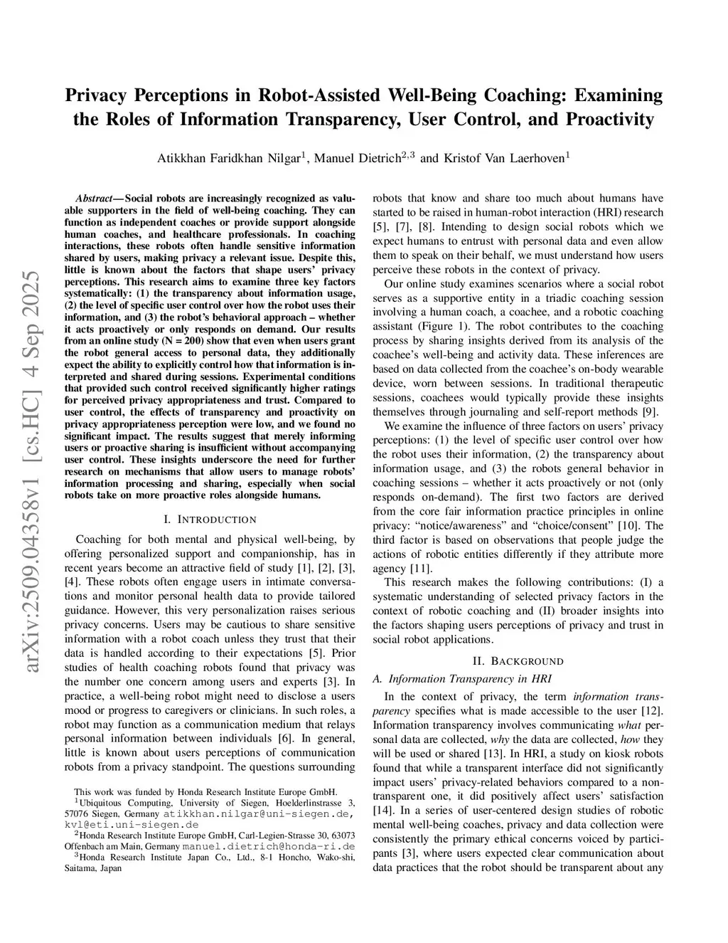 Privacy Perceptions in Robot-Assisted Well-Being Coaching: Examining the Roles of Information Transparency, User Control, and Proactivity