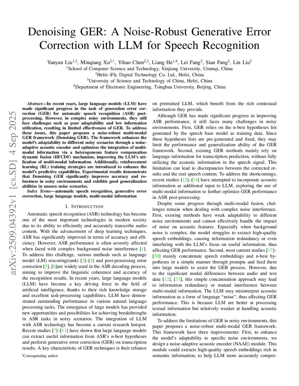 In recent years, large language models (LLM) have made significant progress in the task of generation error correction (GER) for automatic speech recognition (ASR) post-processing. However, in complex noisy environments, they still face challenges such as poor adaptability and low information utilization, resulting in limited effectiveness of GER. To address these issues, this paper proposes a noise-robust multi-modal GER framework (Denoising GER). The framework enhances the model's adaptability to different noisy scenarios through a noise-adaptive acoustic encoder and optimizes the integration of multi-modal information via a heterogeneous feature compensation dynamic fusion (HFCDF) mechanism, improving the LLM's utilization of multi-modal information. Additionally, reinforcement learning (RL) training strategies are introduced to enhance the model's predictive capabilities. Experimental results demonstrate that Denoising GER significantly improves accuracy and robustness in noisy environments and exhibits good generalization abilities in unseen noise scenarios.