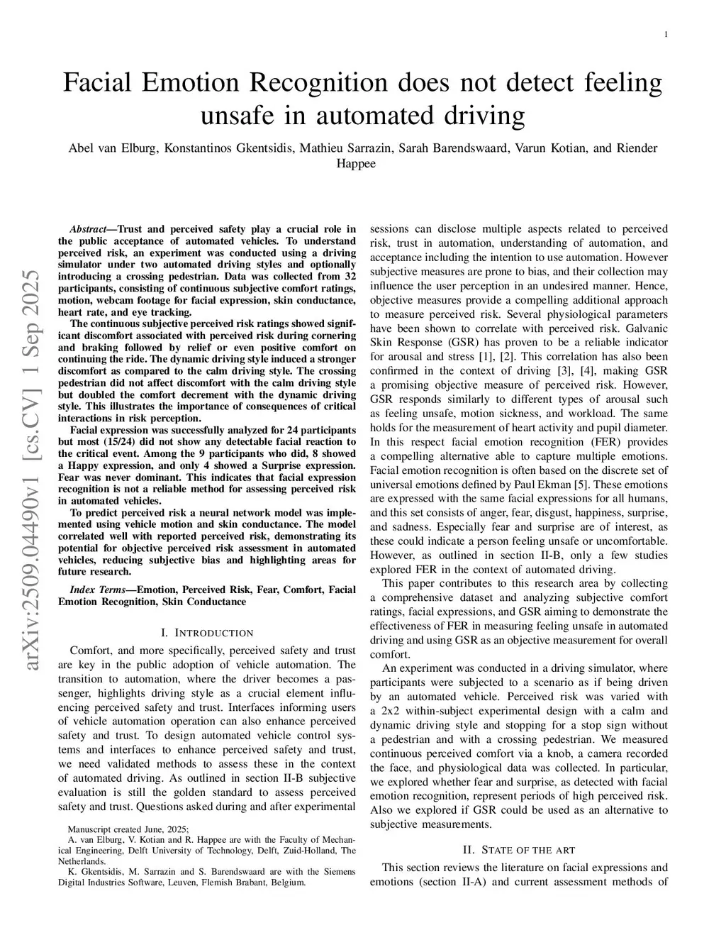Facial Emotion Recognition does not detect feeling unsafe in automated driving