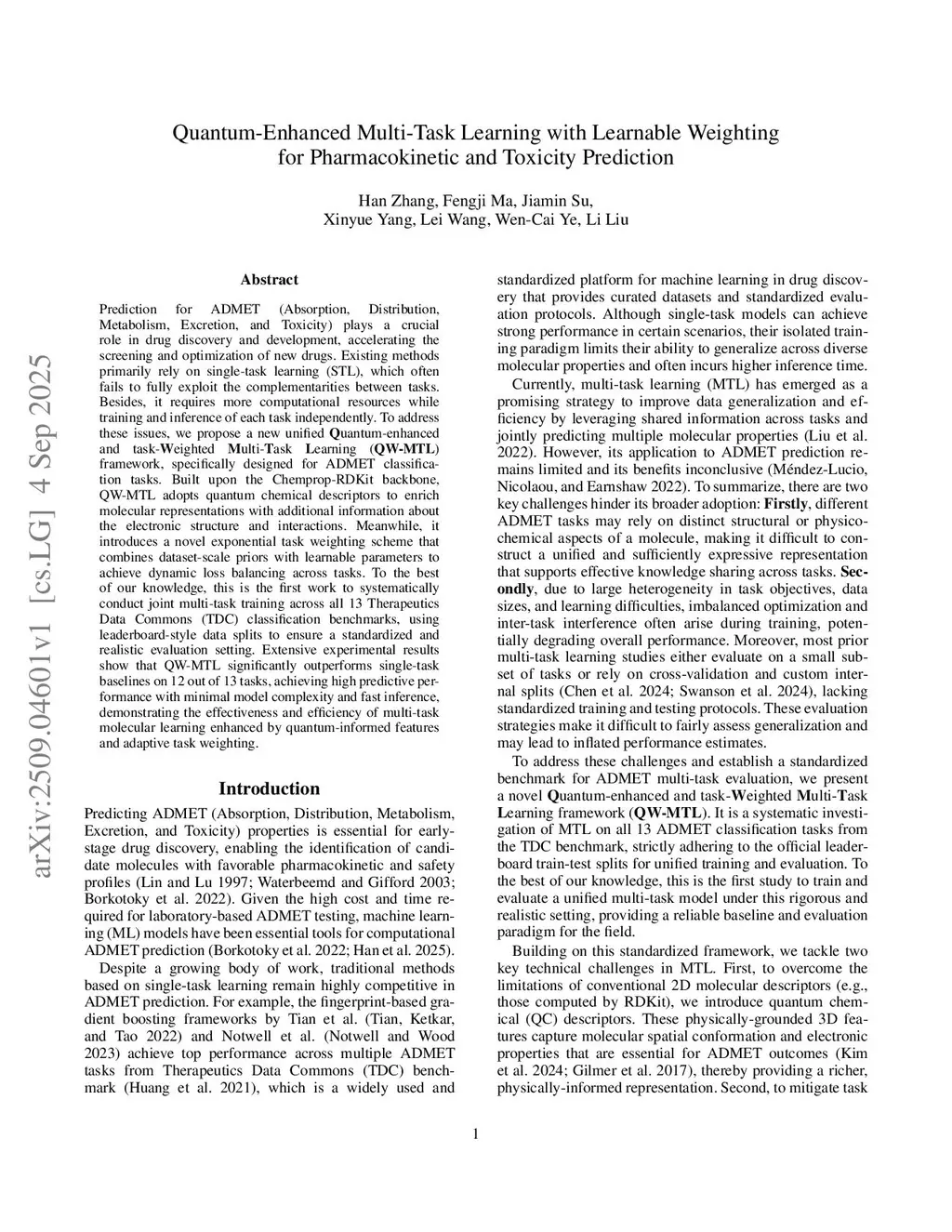 Quantum-Enhanced Multi-Task Learning with Learnable Weighting for Pharmacokinetic and Toxicity Prediction