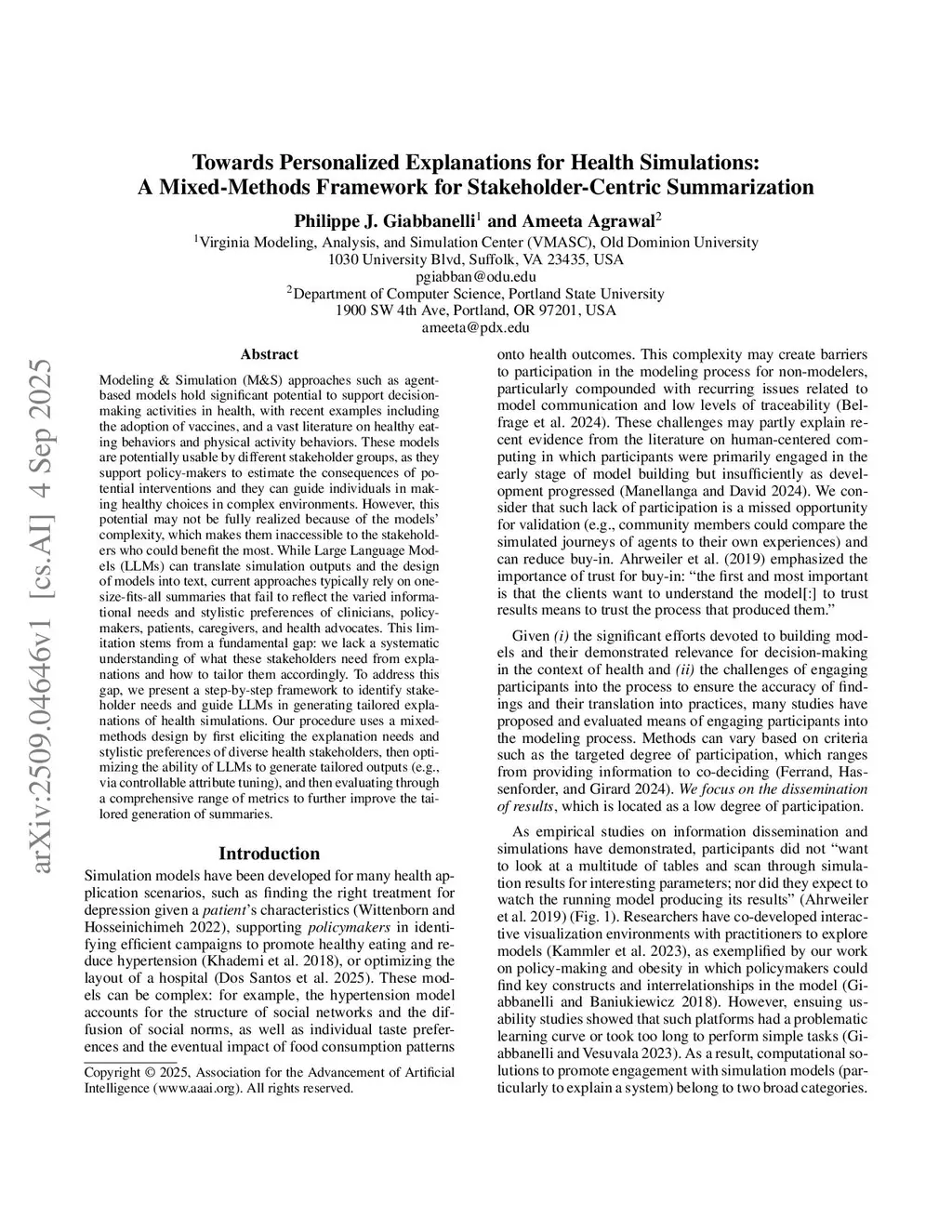 Towards Personalized Explanations for Health Simulations: A Mixed-Methods Framework for Stakeholder-Centric Summarization
