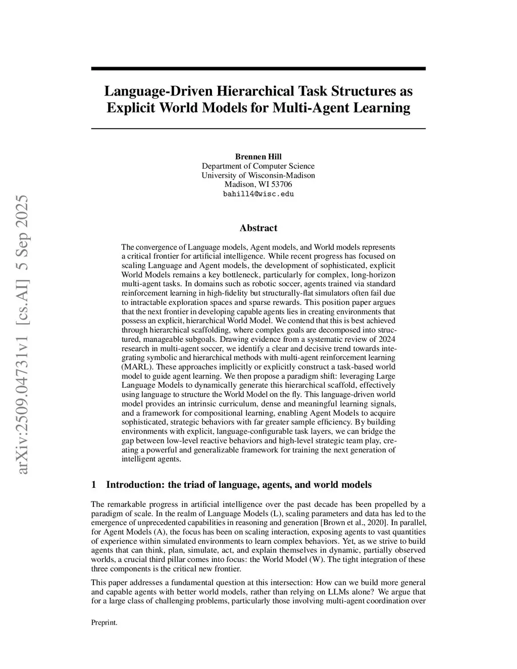 Recent advances in agent development have focused on scaling model size and raw interaction data, mirroring successes in large language models. However, for complex, long-horizon multi-agent tasks such as robotic soccer, this end-to-end approach often fails due to intractable exploration spaces and sparse rewards. We propose that an effective world model for decision-making must model the world's physics and also its task semantics. A systematic review of 2024 research in low-resource multi-agent soccer reveals a clear trend towards integrating symbolic and hierarchical methods, such as Hierarchical Task Networks (HTNs) and Bayesian Strategy Networks (BSNs), with multi-agent reinforcement learning (MARL). These methods decompose complex goals into manageable subgoals, creating an intrinsic curriculum that shapes agent learning. We formalize this trend into a framework for Hierarchical Task Environments (HTEs), which are essential for bridging the gap between simple, reactive behaviors and sophisticated, strategic team play. Our framework incorporates the use of Large Language Models (LLMs) as generative world models of tasks, capable of dynamically generating this scaffolding. We argue that HTEs provide a mechanism to guide exploration, generate meaningful learning signals, and train agents to internalize hierarchical structure, enabling the development of more capable and general-purpose agents with greater sample efficiency than purely end-to-end approaches.