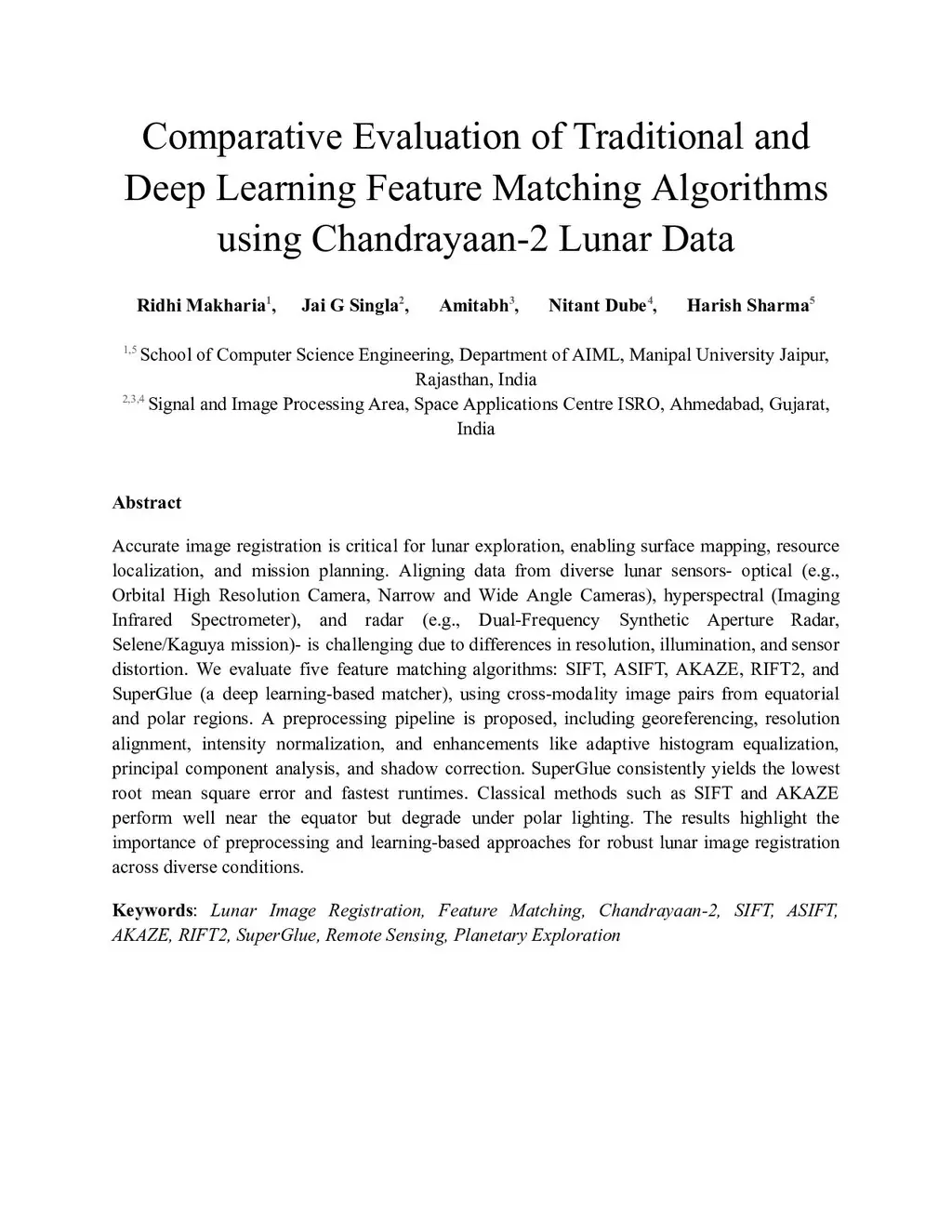 Comparative Evaluation of Traditional and Deep Learning Feature Matching Algorithms using Chandrayaan-2 Lunar Data