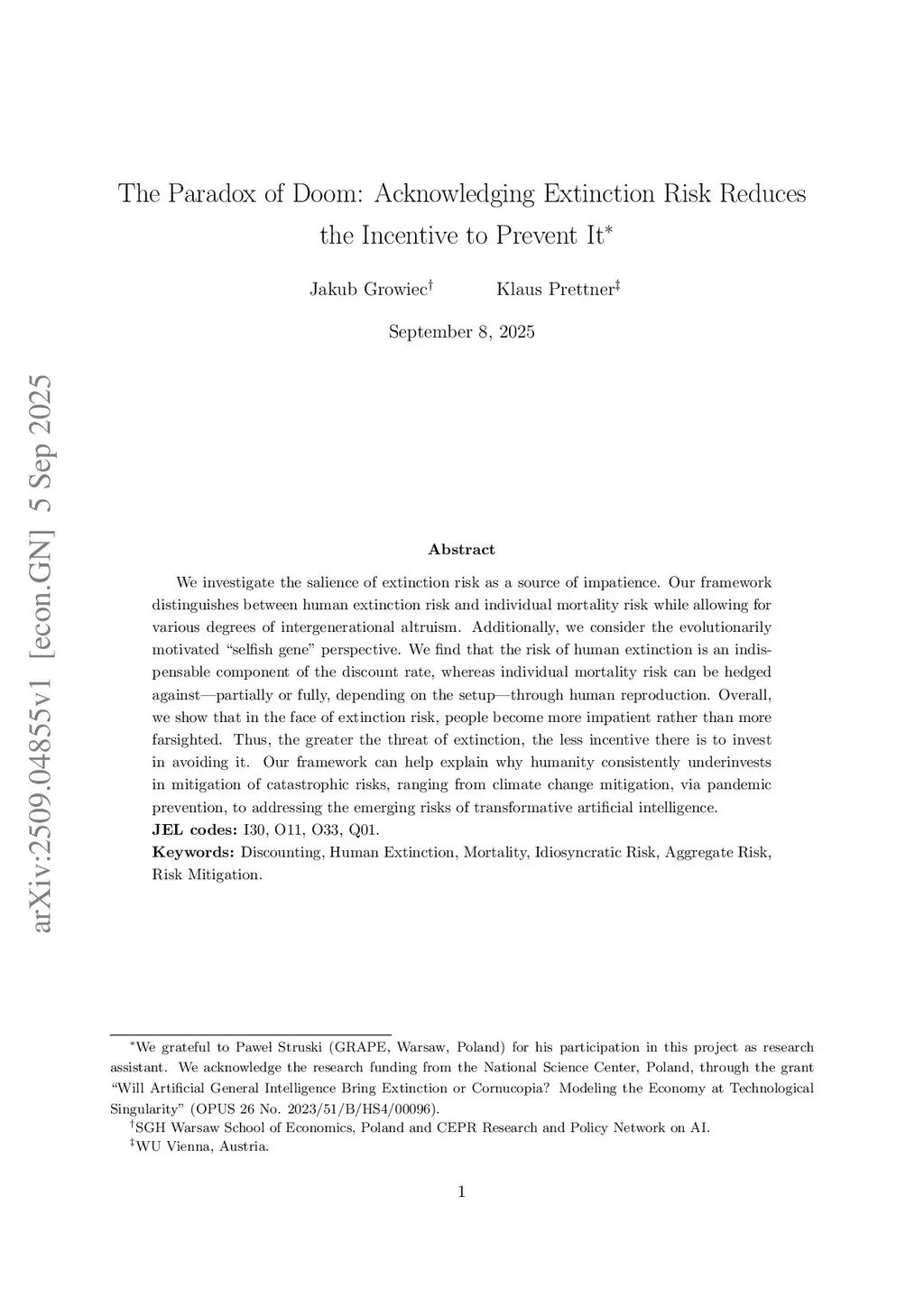 The Paradox of Doom: Acknowledging Extinction Risk Reduces the Incentive to Prevent It