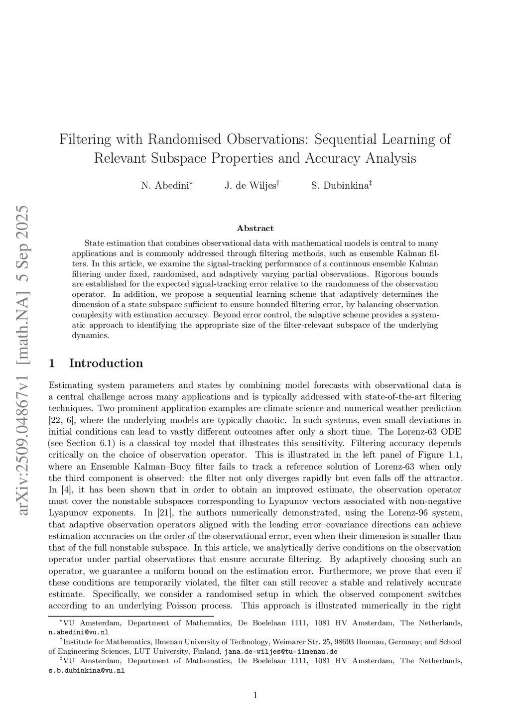 Filtering with Randomised Observations: Sequential Learning of Relevant Subspace Properties and Accuracy Analysis