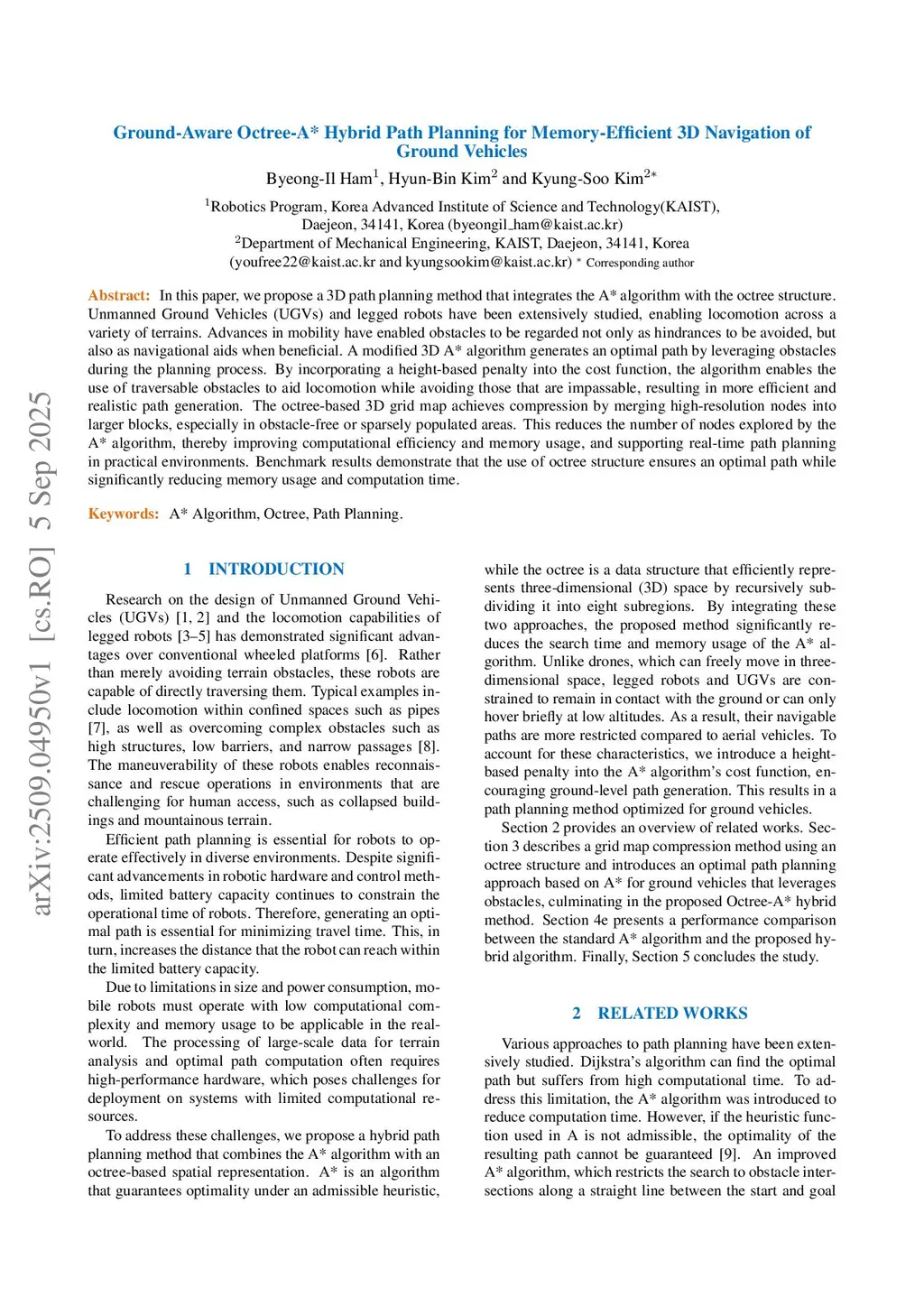 Ground-Aware Octree-A* Hybrid Path Planning for Memory-Efficient 3D Navigation of Ground Vehicles
