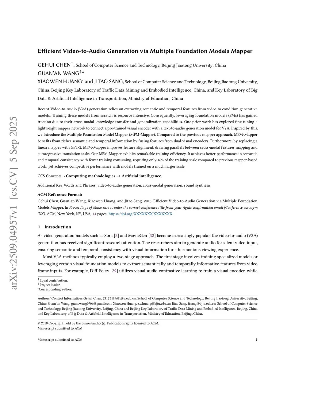 Efficient Video-to-Audio Generation via Multiple Foundation Models Mapper