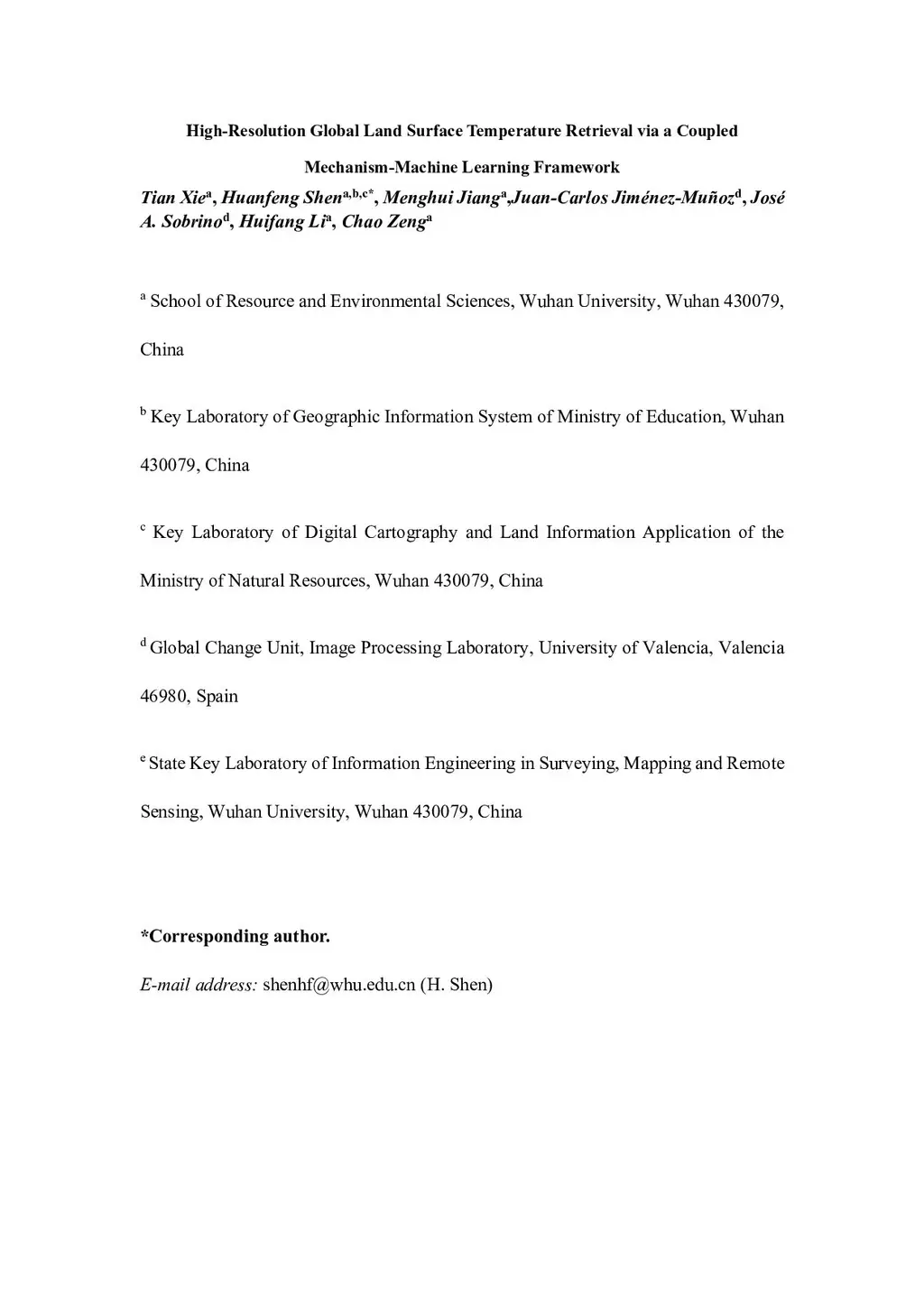 High-Resolution Global Land Surface Temperature Retrieval via a Coupled Mechanism-Machine Learning Framework