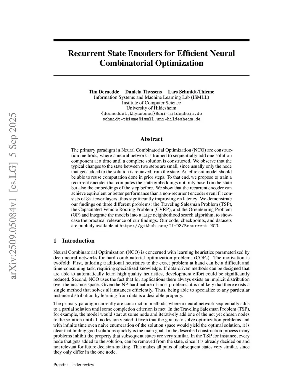 Recurrent State Encoders for Efficient Neural Combinatorial Optimization
