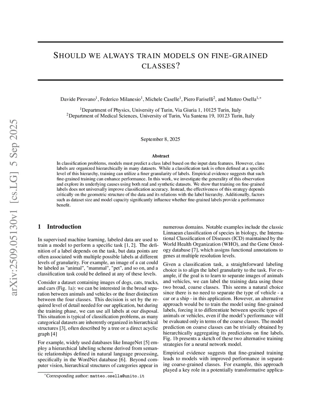 In classification problems, models must predict a class label based on the input data features. However, class labels are organized hierarchically in many datasets. While a classification task is often defined at a specific level of this hierarchy, training can utilize a finer granularity of labels. Empirical evidence suggests that such fine-grained training can enhance performance. In this work, we investigate the generality of this observation and explore its underlying causes using both real and synthetic datasets. We show that training on fine-grained labels does not universally improve classification accuracy. Instead, the effectiveness of this strategy depends critically on the geometric structure of the data and its relations with the label hierarchy. Additionally, factors such as dataset size and model capacity significantly influence whether fine-grained labels provide a performance benefit.