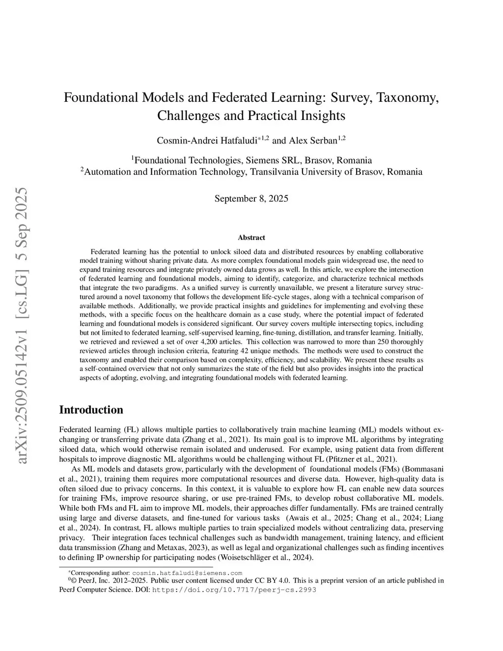 Federated learning has the potential to unlock siloed data and distributed resources by enabling collaborative model training without sharing private data. As more complex foundational models gain widespread use, the need to expand training resources and integrate privately owned data grows as well. In this article, we explore the intersection of federated learning and foundational models, aiming to identify, categorize, and characterize technical methods that integrate the two paradigms. As a unified survey is currently unavailable, we present a literature survey structured around a novel taxonomy that follows the development life-cycle stages, along with a technical comparison of available methods. Additionally, we provide practical insights and guidelines for implementing and evolving these methods, with a specific focus on the healthcare domain as a case study, where the potential impact of federated learning and foundational models is considered significant. Our survey covers multiple intersecting topics, including but not limited to federated learning, self-supervised learning, fine-tuning, distillation, and transfer learning. Initially, we retrieved and reviewed a set of over 4,200 articles. This collection was narrowed to more than 250 thoroughly reviewed articles through inclusion criteria, featuring 42 unique methods. The methods were used to construct the taxonomy and enabled their comparison based on complexity, efficiency, and scalability. We present these results as a self-contained overview that not only summarizes the state of the field but also provides insights into the practical aspects of adopting, evolving, and integrating foundational models with federated learning.