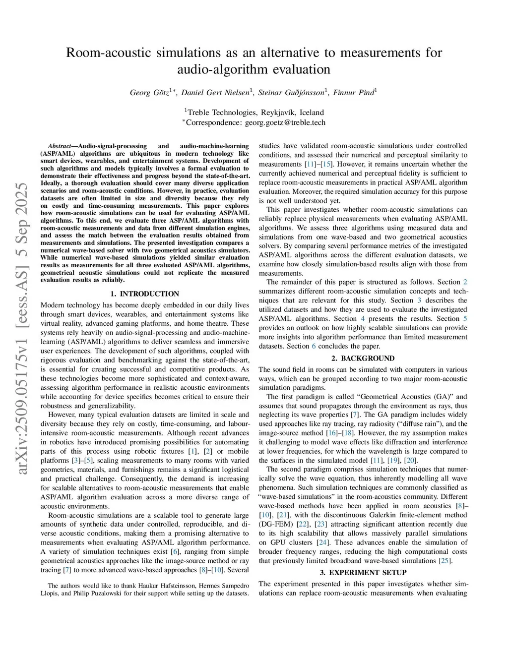Room-acoustic simulations as an alternative to measurements for audio-algorithm evaluation